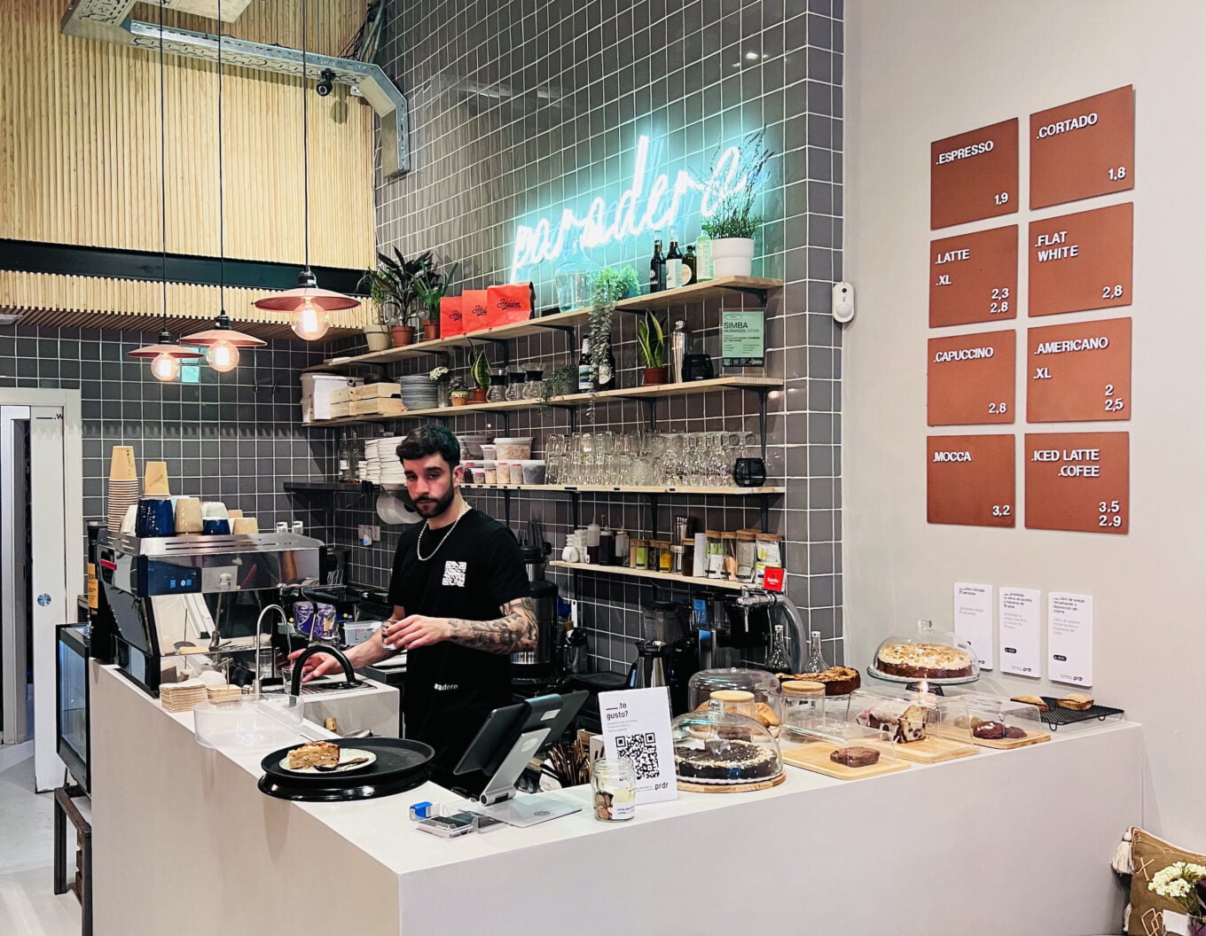 Para mí, la mejor cafetería de Barcelona. Nacida hace apenas tres meses como la obra cumbre de dos argentinos, sirve una combinación de café de especialidad (comprado al tostadero de Hidden) y brunch (la vieja fórmula del desayuno-almuerzo, ¿les suena?). El espresso se tira en 26 segundos que pueden alargarse un poco más para sacar una bebida ligera y se ruega acompañarlo con la torta de chocolate o la de manzana y pera. Los orígenes: Colombia para el espresso, Kenia para el filtrado (en Moccamaster). Se destacan la arquitectura y la música (es un guiño; pregunten). Índice espresso: 1,90 euro. Pasen. Se está convirtiendo en un pequeño consulado cafetero argentino.