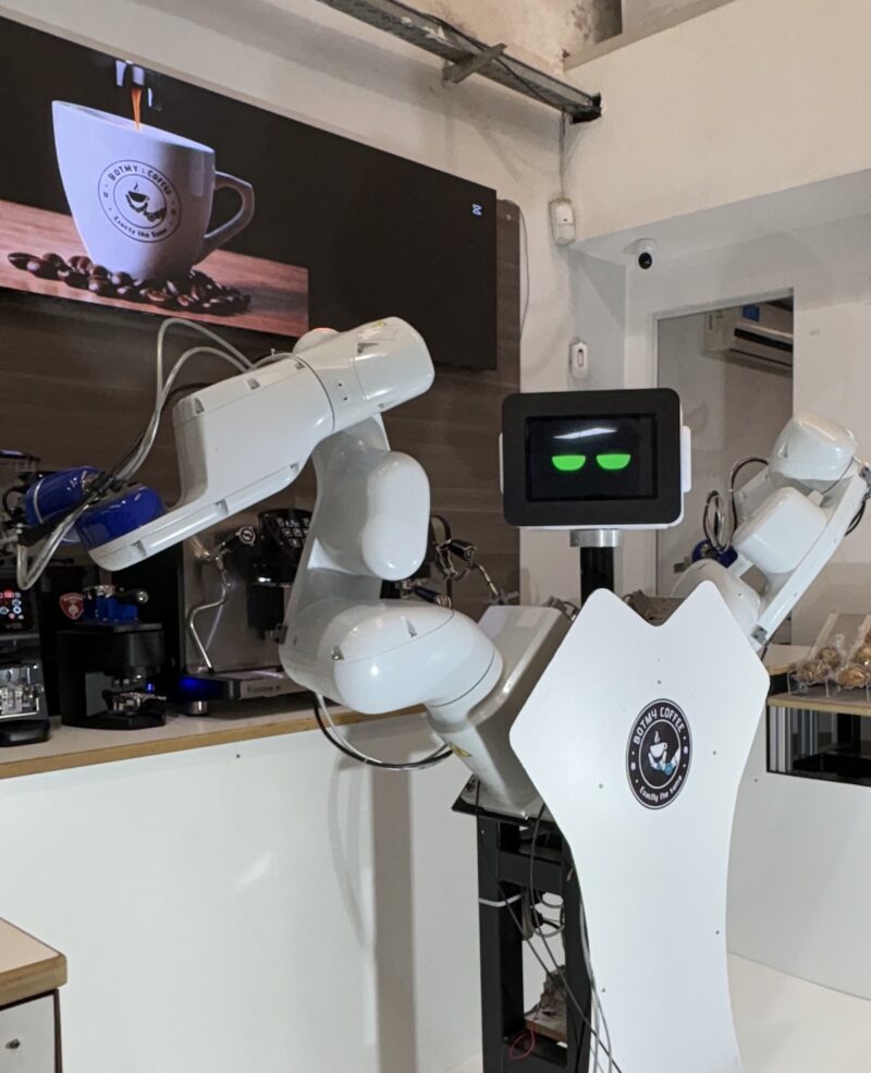 El primer robot barista argentino ya está en modo ON. Se llama BotMy Coffee y su brazo mecánico prepara y sirve el cafecito con la destreza de un experto. El robot prepara distintas bebidas con dos brazos completamente automatizados, según el pedido del cliente: “Utilizando los mismos implementos y técnicas de un barista profesional de las mejores cafeterías”, dicen en BotMy Solutions, la empresa que inventó la criatura. Lo vi en funcionamiento hace unos meses, cuando todavía tenía algunos detalles por ajustar, y es un verdadero prodigio: a diferencia de otros robots que tienen una cafetera incorporada, el BotMy Coffee maneja la misma cafetera espresso que usaría un humano así como el molinillo y la espumadora de leche. Mis amigos de Modo Barista aportan los granos en esta patriada tecnológica y uno se pregunta: ¿sueñan los robots con espressos eléctricos?